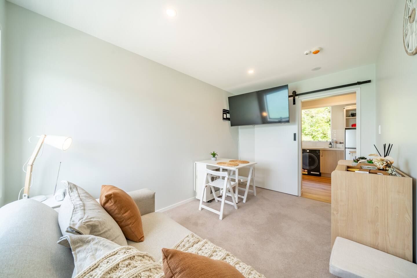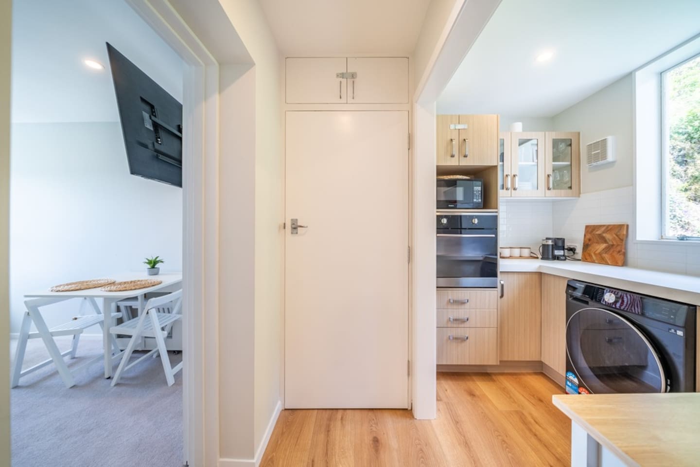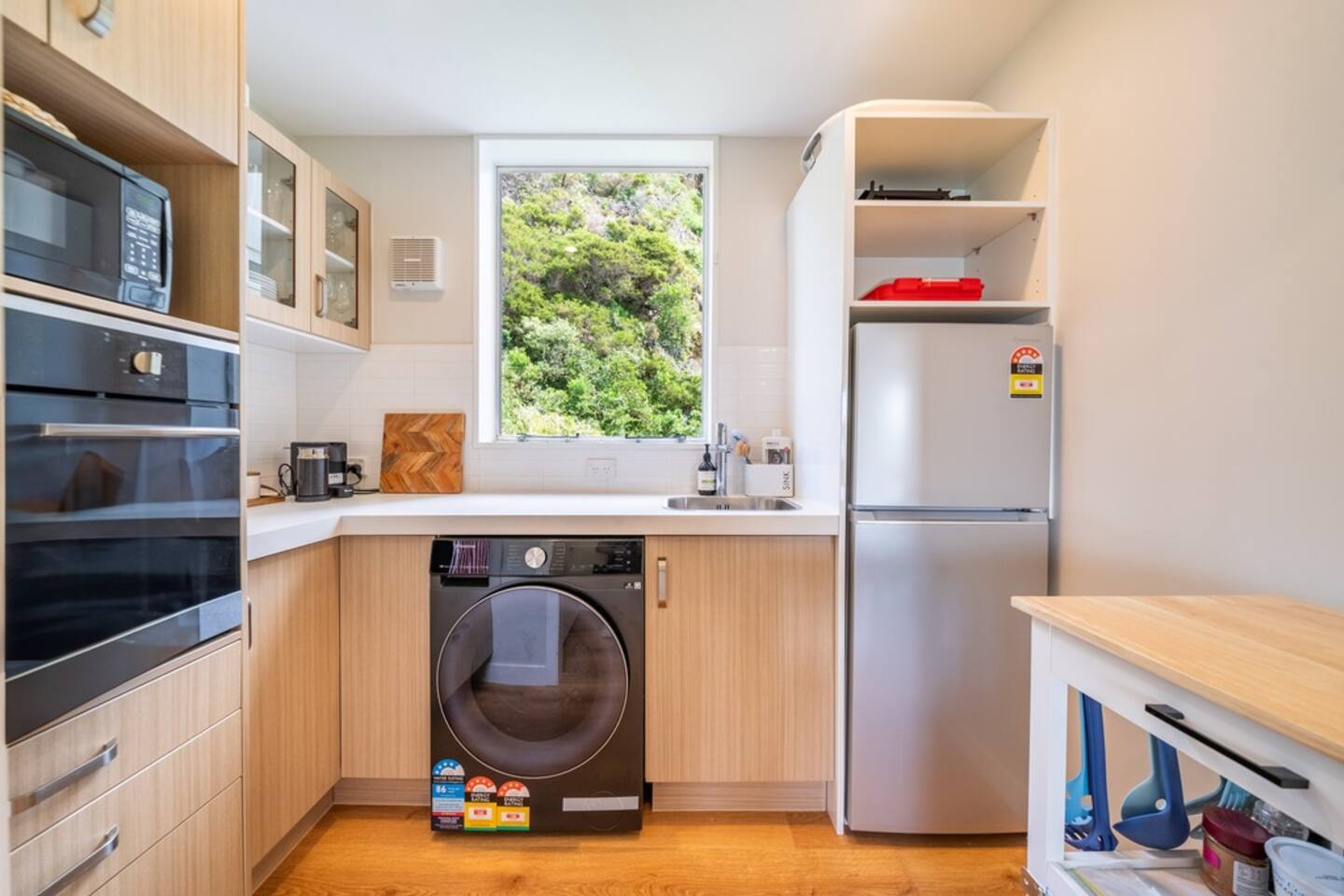 Our inviting two‑bedroom apartment features a primary bedroom with a comfortable queen‑size bed, along with a versatile living area that seamlessly converts into a second bedroom equipped with a double sofa bed. The full kitchen includes a convenient washer–dryer combo, providing everything you need for an extended or effortless stay. The bathroom is fully equipped and stocked with fresh towels and complimentary amenities to ensure a pleasant and comfortable experience. The apartment also enjoys sweeping views of Wellington Harbour, offering a serene backdrop from morning to evening. Whether you’re enjoying a quiet coffee or unwinding after a day out, the ever‑changing harbour scenery adds a sense of calm and connection to the city’s waterfront